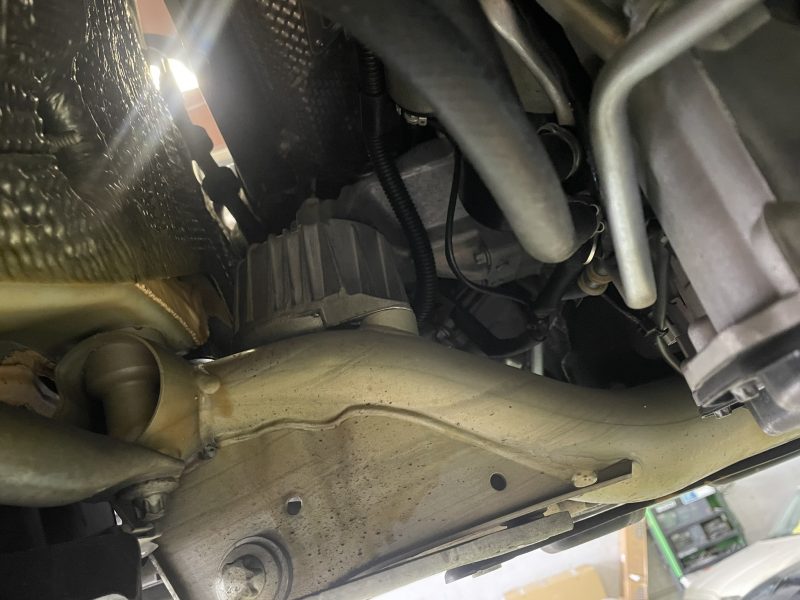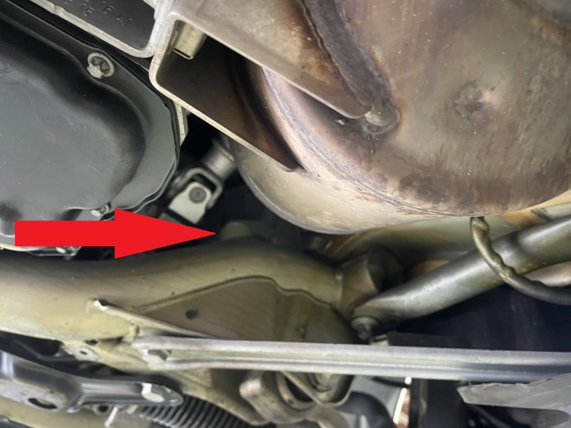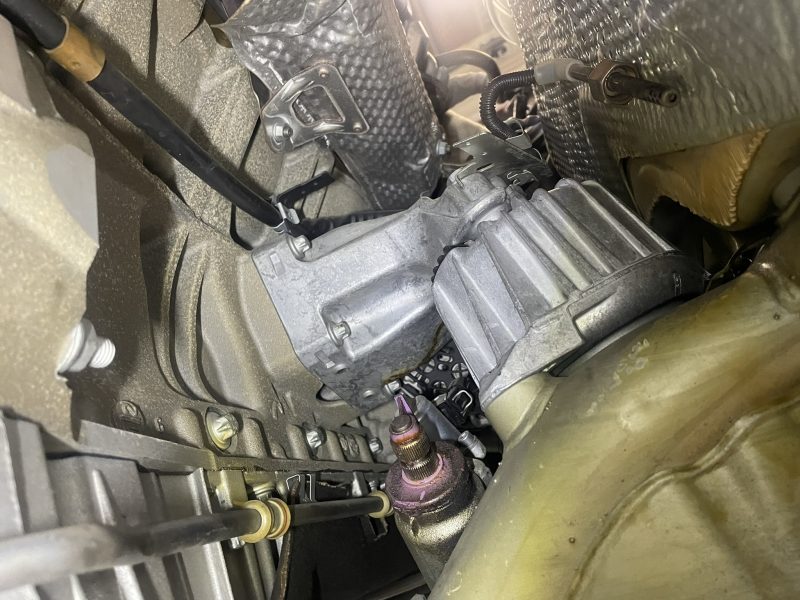 しかし右側のマウントは、マフラーの触媒やステアリングシャフト等の部品が密集しており、取り出せるスペースをまず確保する必要性があります。