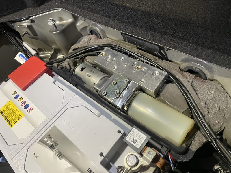 全て組み換え後はハイドロリックフルードを充填し、トランクやバリオルーフを数回作動させてフルードのエア抜きを行い、スムーズに駆動するか確認。