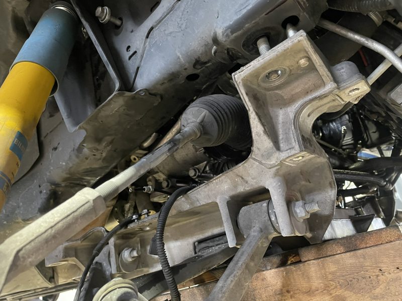 その為、フロント足回り類やステアリングシャフトの取り外し、ブレーキラインやパワーステアリングラインの取り外し等、多くの付属品をまず取り外すことになります。