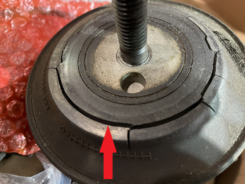 しかしマウント上下面を確認すると、ゴム層の劣化による断絶状態が診られるのが判明。