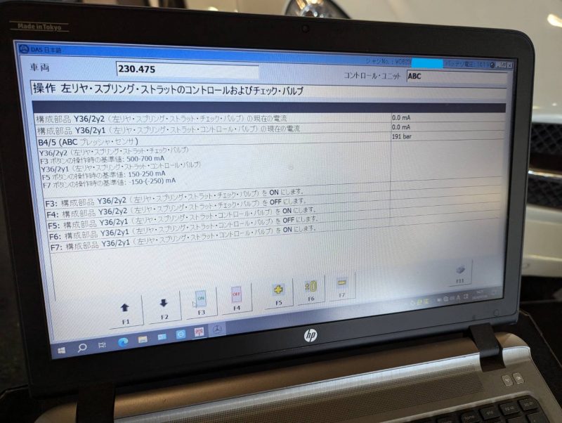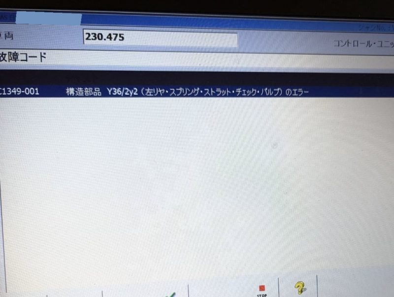 ABCのDTC(故障コード)を確認すると、左リアストラットのチェックバルブのエラーを検知しています。