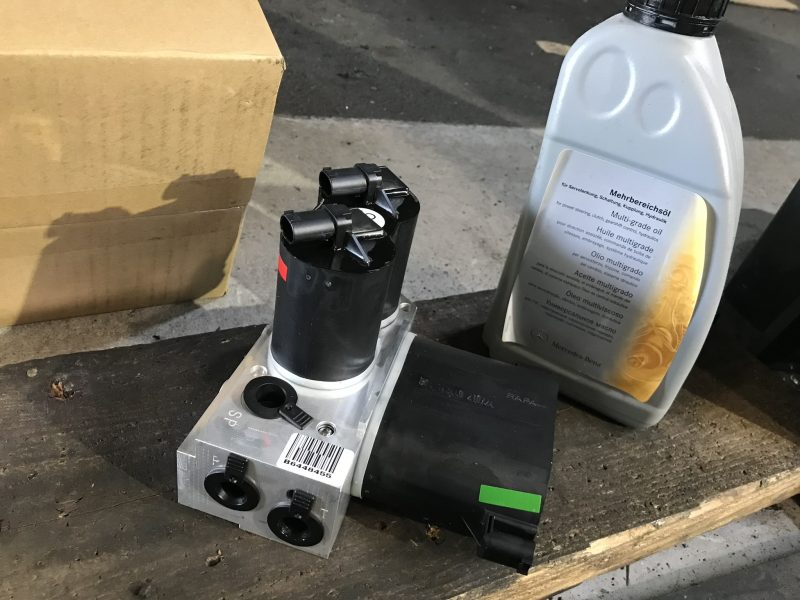新しいバルブユニットへと組替後はABCフルードの充填/エア抜き作業を実施して完了…ちなみにこのバルブ、約38万近くする高額な部品です。