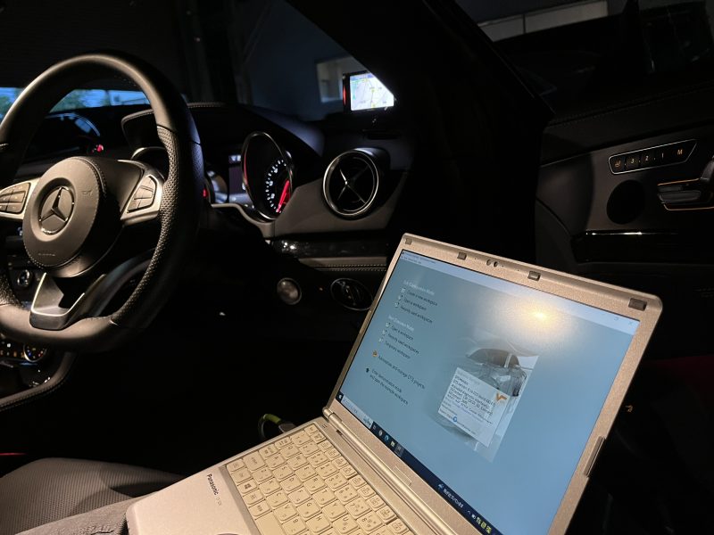 一般的にご依頼を頂くのが逆のパターンで「バックシフトアラームの無効化」を希望されるベンツオーナー様が多く、その際は専用のコーディングソフトを使用してコーディング内容変更によるプログラミング処置を実施します。