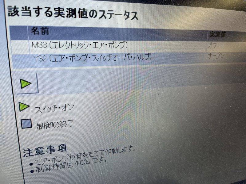 MEユニットプログラムの設定変更によりエアポンプ作動制御を行わない仕様へと変更する為、故障してしまっているエアポンプが取り付けられた状態でも「エアポンプが作動しない」=「エラーを検知しない」ので、DTC(故障コード)は入力せず=今後エアポンプ機能に対するチェックエンジン警告ランプも点灯しなくなります。