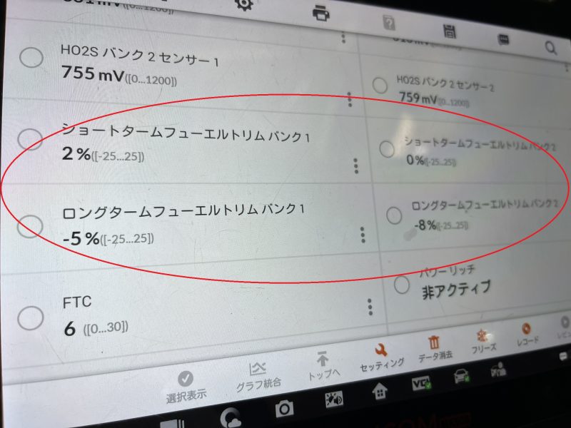 またオイルレベル超過等による過剰なブローバイガス発生やシリンダー内へのオイル混入等も、燃焼過程においてフューエルトリム値に影響を及ぼす要因となり得ます。