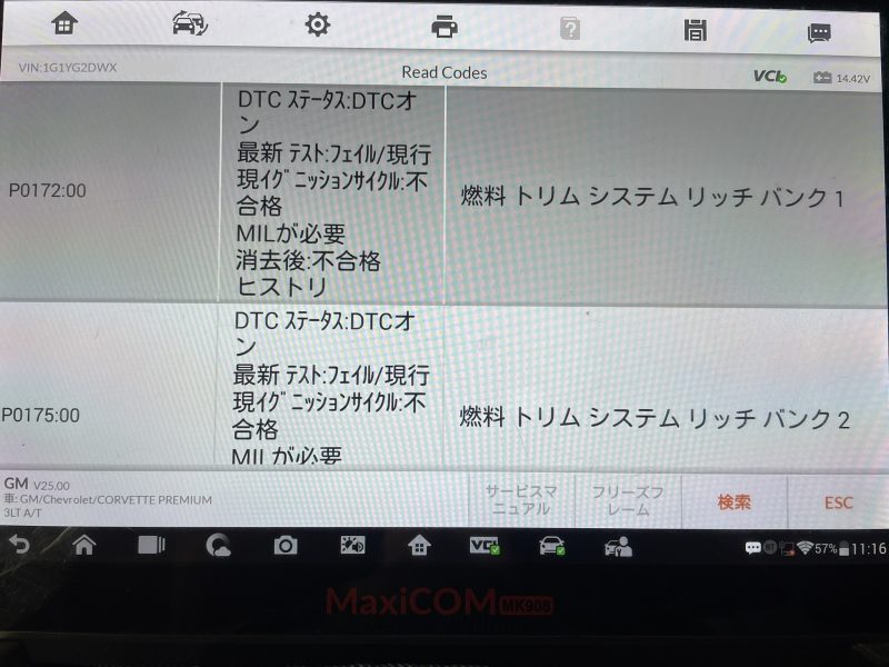 DTC(故障コード)を確認すると、フューエルトリム値がシステムリッチ状態に陥っていると判明。