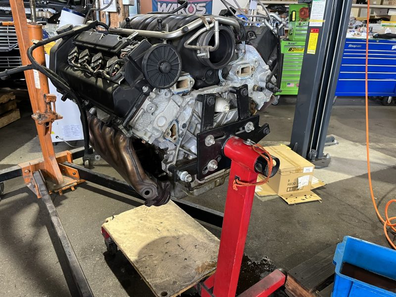 エンジン組み立て後は慎重に車体側にドッキング…エンジン整備性の決して良くないFFマウントのノースターエンジン、オイルパン取り外すだけでもエンジン脱着が必須となる構造です。