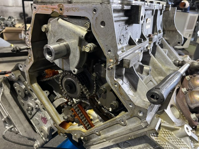 オイルパンを取り外してガスケット類を交換するにも、FFマウントされたノーススターエンジンでは、車載状態での作業は不可能となります。