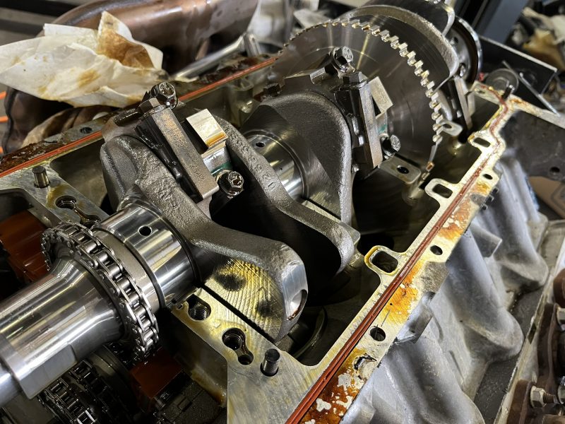この部位はエンジンブロックロア側となり、一体式のクランクキャップとなります。
