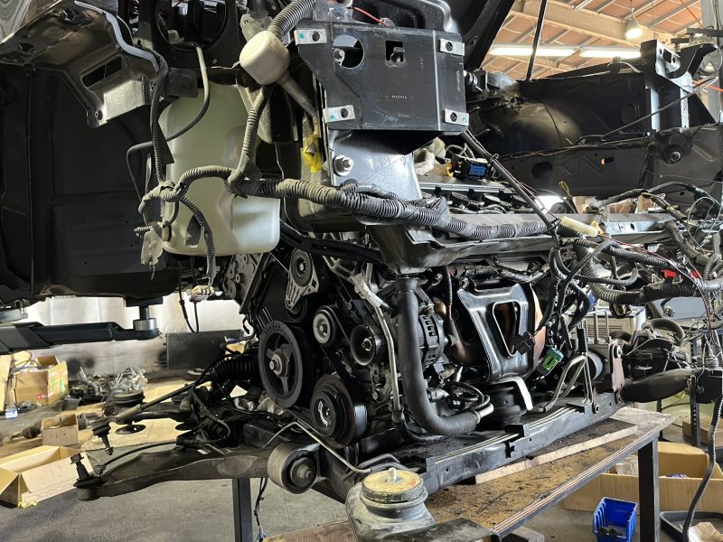 その為まずは、車両よりメンバーごとエンジン&ミッションの取り外し作業を行います。