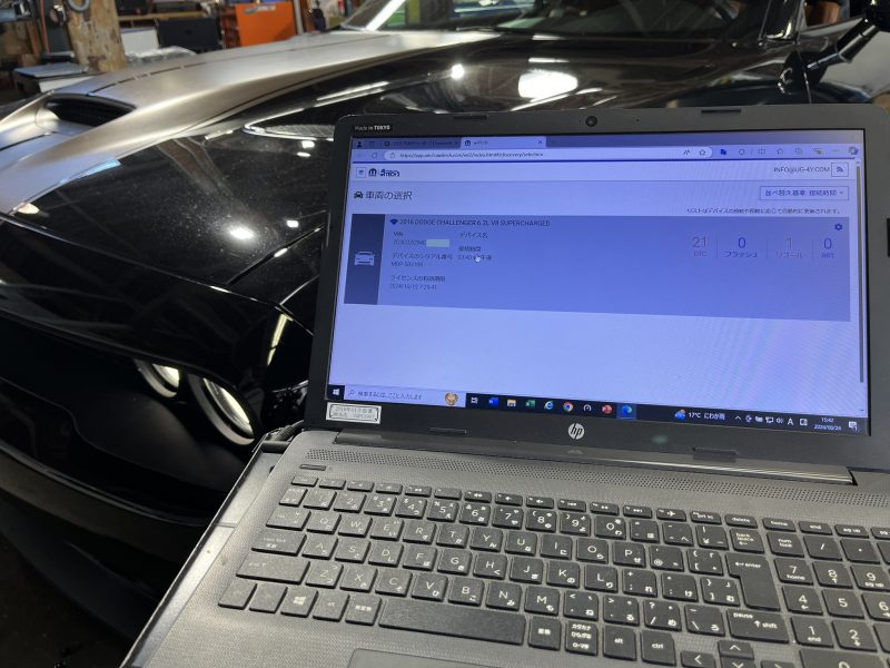 クライスラー/ダッジ系だけでも年間400件以上の各種メンテナンスご入庫を頂いているUGでは、連日オンラインによる診断/プログラム作業を行っています。(2023y度 年間クライスラー&ダッジ修理入庫実績433台)