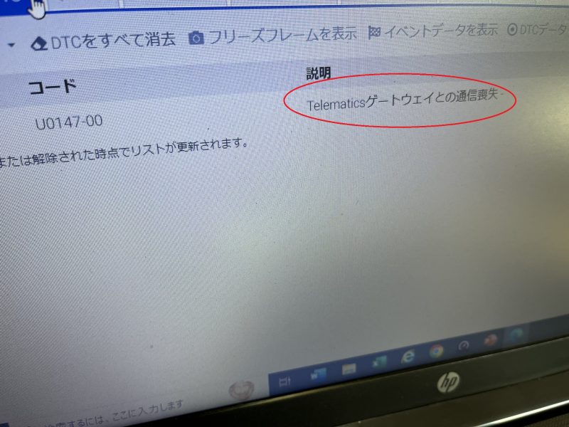 ブラインドスポットモジュール(BSM)のDTC(故障コード)を確認すると、テレマチックスゲートウェイとの通信喪失を検知してしまっています。