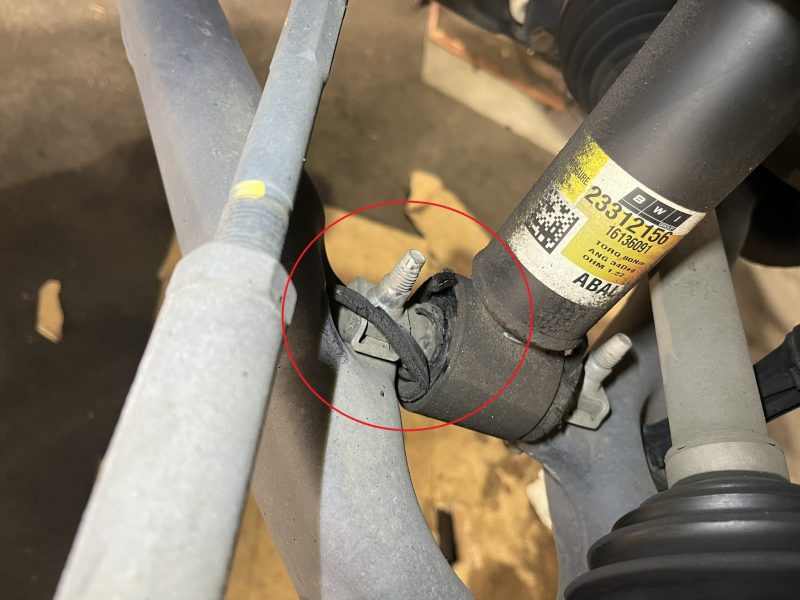 またフロントのショックアブソーバーに至っては、ロア側のブッシュが損傷してしまっています。
