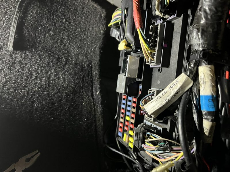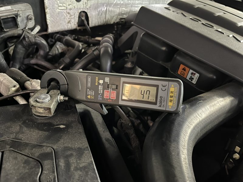エンジンルーム及び室内側双方のヒューズボックスより、順番に個々の回路を測定しながら漏電箇所を探索していきます。
