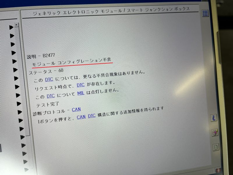 テスターを使用して交換した新しいSJBのモジュールリプログラミングを処置することにより、無事コンフィグレーションも終了してDTC(故障コード)もクリア可能となります。
