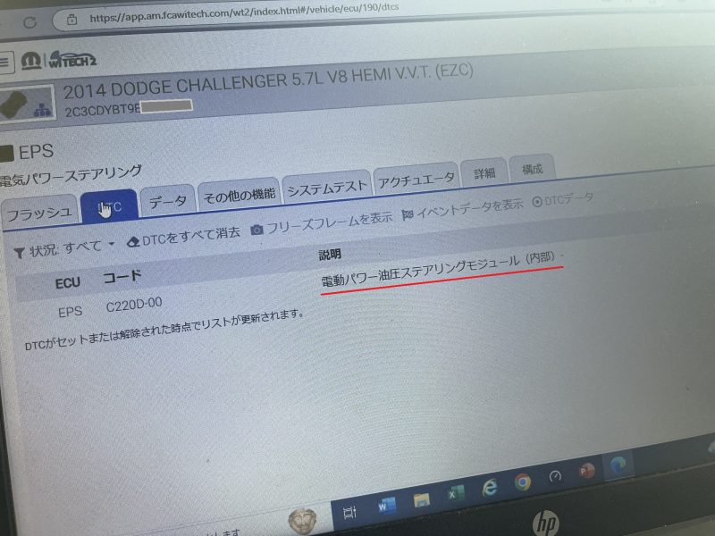 wiTECHを接続してDTC(故障コード)を確認すると、電動パワー油圧ステアリングモジュールの内部故障を検知しています。