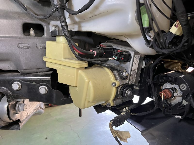 いわゆる電動制御パワーステアリングといっても、電気式モーターによる油圧制御のパワーステアリングとなり、今回の不具合はポンプ内ECUの内部故障によって本体の交換が必要となります。
