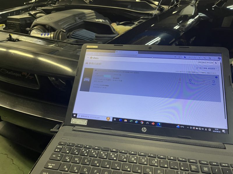 クライスラー/ダッジ系だけでも年間400件以上の各種メンテナンスご入庫を頂いているUGでは、連日オンラインによる診断/プログラム作業を行っています。(2023y度 年間クライスラー&ダッジ修理入庫実績433台)
