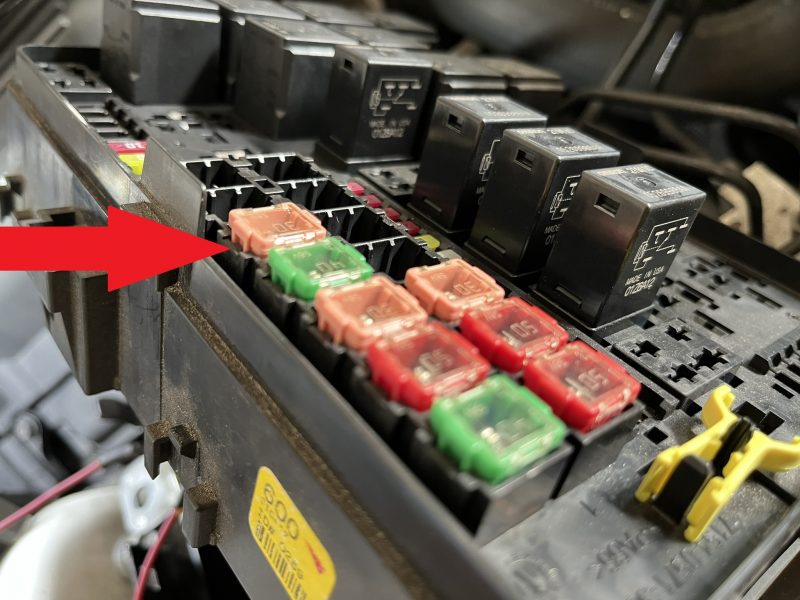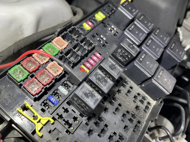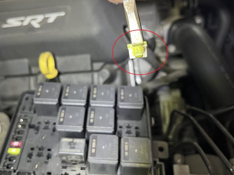 実はLAモデル/チャレンジャーのヘッドライトヒューズトラブルは非常に多く、今回のSRTも使用されている20A/ミニブレードヒューズが焼けてしまっている状態です。