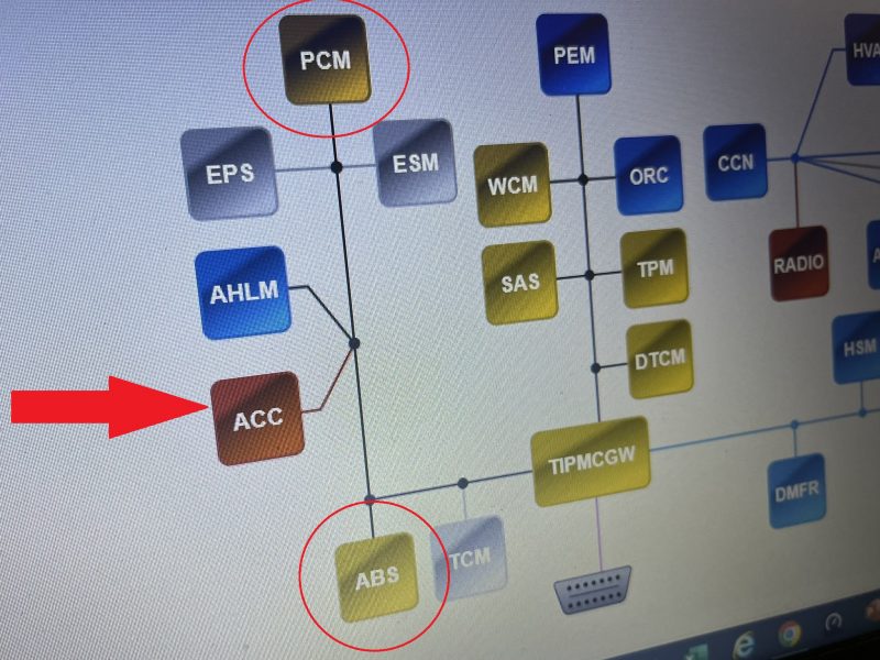 結論から言えば診断の結果、今回のトラブルはアダプティブクルーズコントロールユニット(ACC)の内部不良によりCAN-Cラインにノイズを送信し、それによってABSモジュールまでもがスリープさせてしまっている状態でした。
