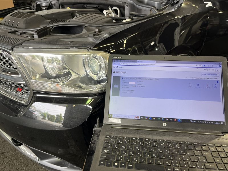 クライスラー/ダッジ系だけでも年間400件以上の各種メンテナンスご入庫を頂いているUGでは、連日オンラインによる診断/プログラム作業を行っています。(2023y度 年間クライスラー&ダッジ修理入庫実績433台)