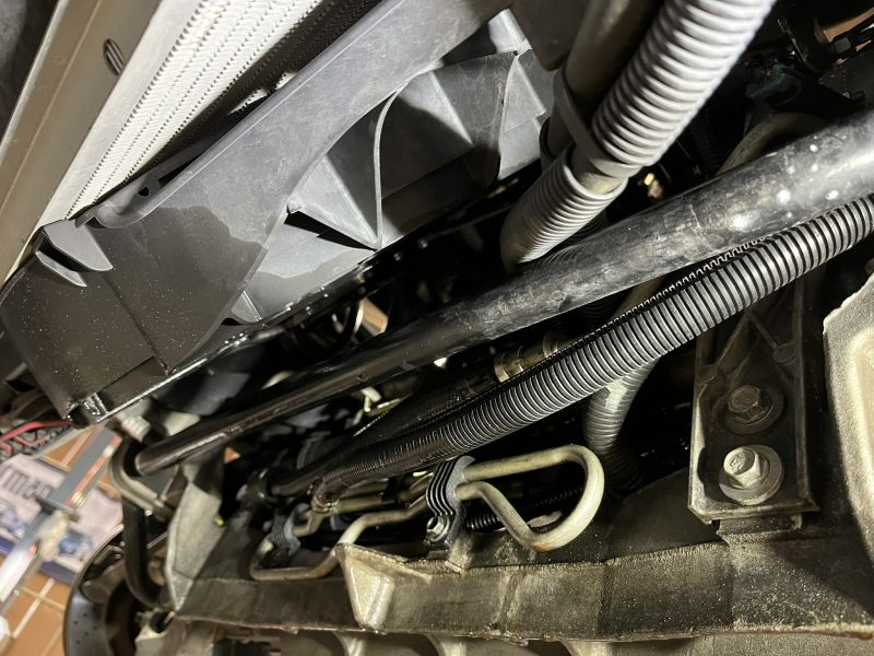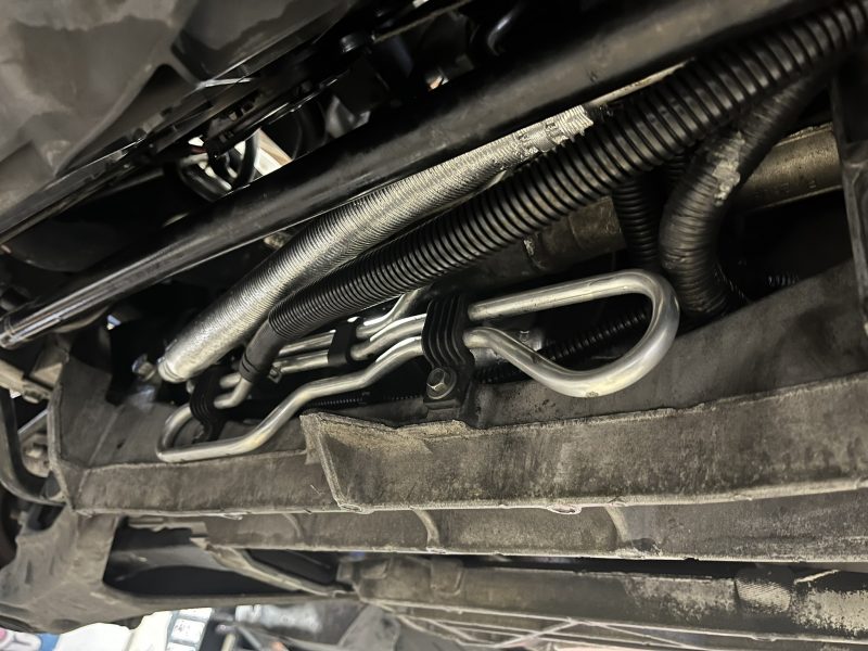 一見、容易に交換できるように見えるパワーステアリングライン…ですが、