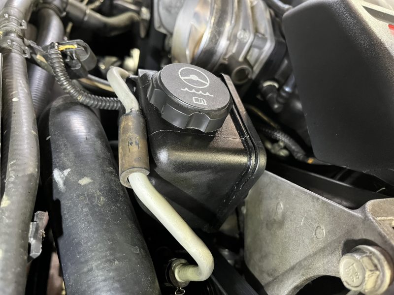 パワーステアリングのオイルが漏れてくる、特にステアリング操作を行うと垂れてくるのが目視出来る状態までオイル漏れが進行している、C6モデル/シボレーコルベットの修理作業です。