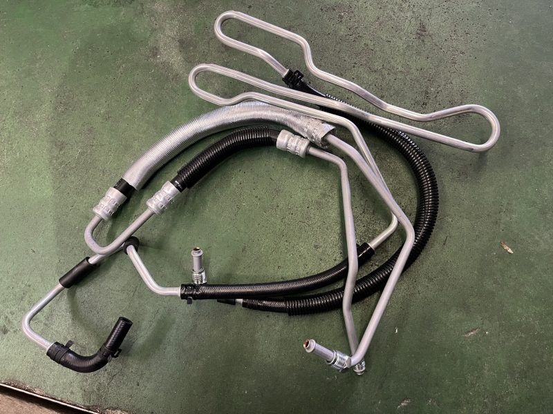 今回は高圧/低圧双方のラインと、パワーステアリングタンクもリフレッシュさせていただきました。