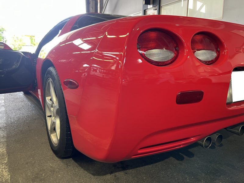 時速55km/hよりスピードを上げると、後部より車速に併せて唸り音が聞き取れる、C5モデル/シボレーコルベットの作業です。
