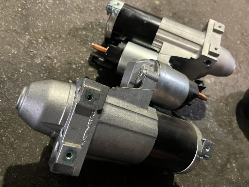症状発生時には「カチカチ」とスターター周辺からマグネットスイッチらしき音が聞きとれるので、セキュリティトラブルやECM出力等の問題では無く、単純にスターターモーターの動作不良が発生していると推測できます。