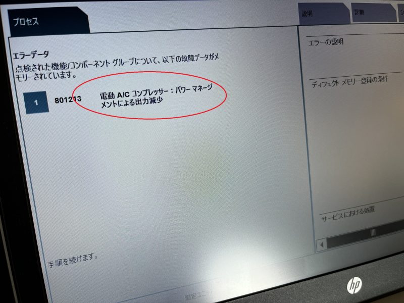 早速ISTAにてディフェクトメモリーを確認すると、パワーマネージメントによるエアコンコンプレッサーの出力減少を検知しています。