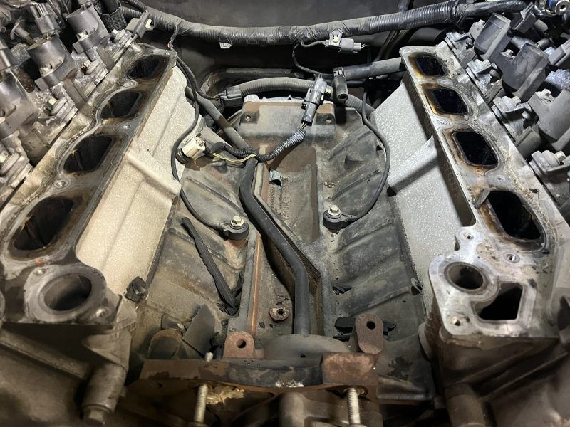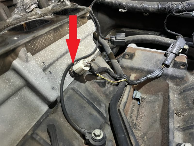 インテークマニを取り外すと、右バンクシリンダーヘッドの内側後方に、CHTセンサーが装着されているのが確認できます。