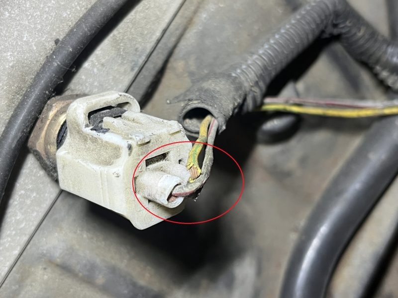 ECTセンサー間欠故障=CHTセンサーの不良かと予測する内容ですが、点検するとセンサーの端子部配線の被膜がかなり損傷しているのが判明。