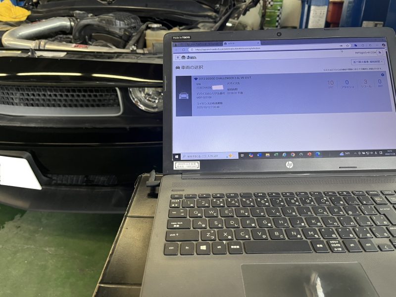 クライスラー/ダッジ系だけでも年間400件以上の各種メンテナンスご入庫を頂いているUGでは、連日オンラインによる診断/プログラム作業を行っています。(2023y度 年間クライスラー&ダッジ修理入庫実績433台)