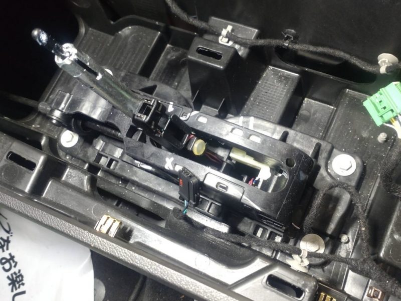 シフターAssyを車両より取り外して新しいシフターハーネスの取付、もしくは改善されたシフターAssyへの組替により、先のトラブルは解決できます。