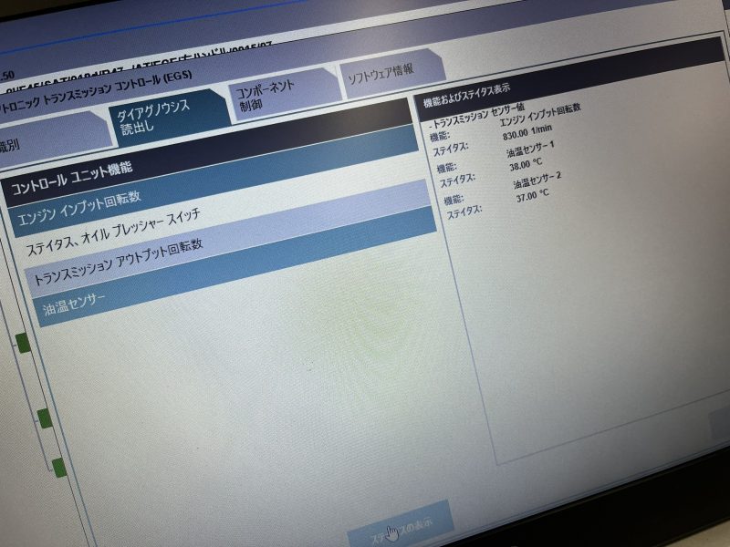 ATFレベル調整はISTAテスターでの「トランスミッションオイルの同期」プロセスを選択して、診断機の指示通りにサービス機能を進行していくことになります。