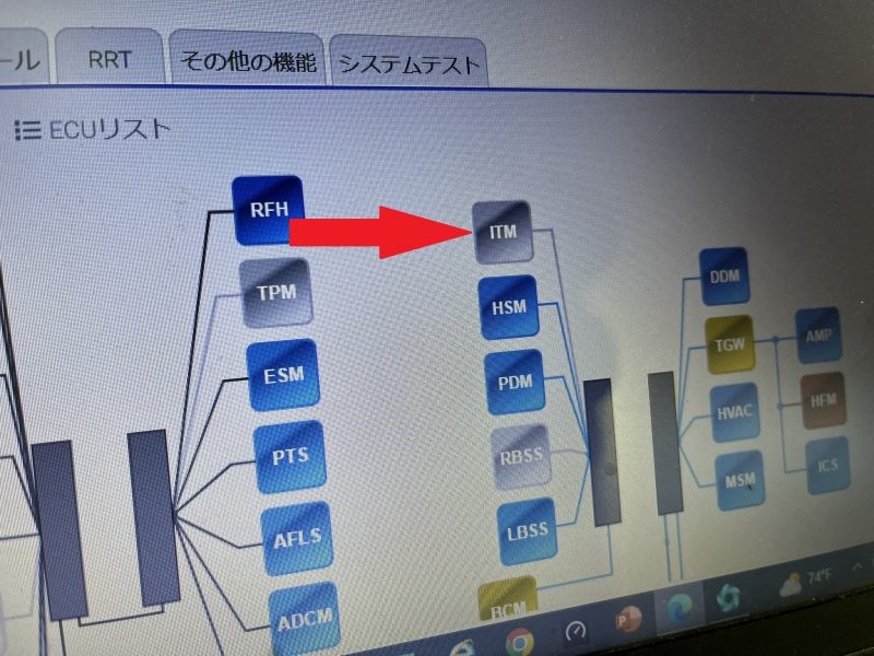 US本国仕様と同様に現車のBCM車両構成を、「ITMが存在しないネットワーク」構成へとプログラム変更処置。