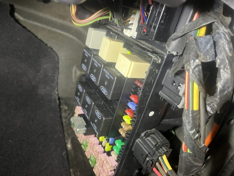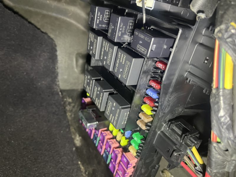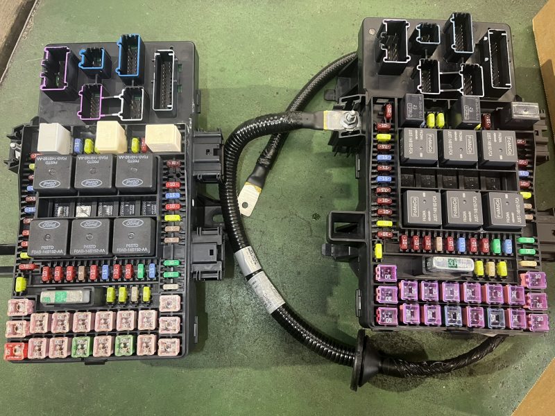 組替前に念のためヒューズ及びリレーの配置が同一か確認し、現車へ組付け作業の進行。