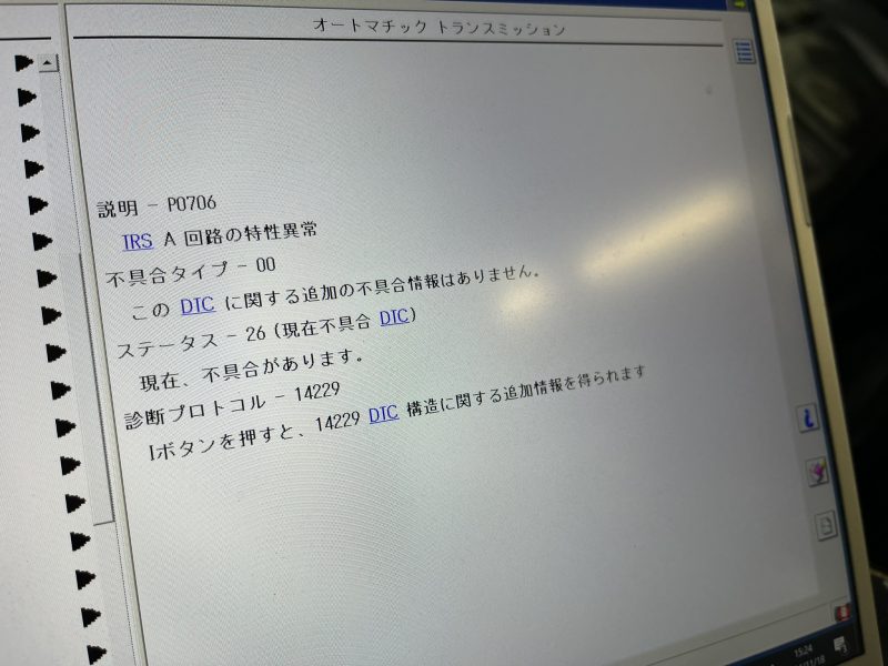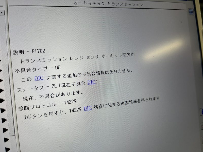 DTC(故障コード)を確認すると、トランスミッションのレンジセンサー回路に対するエラーを検知しています。
