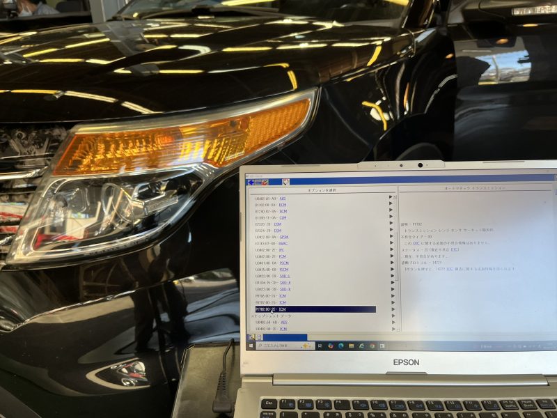 トラクション等の警告ランプが点灯しミッションの変速不具合症状が発生している、2015yフォードエクスプローラーの修理作業です。