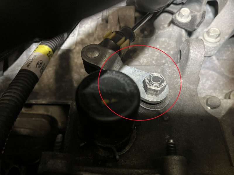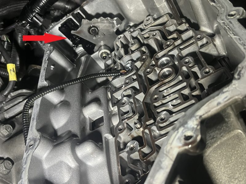 シフトレバーのポジションをTCM(トランスミッションコントロールモジュール)が監視しているのですが、フォードの6F系ミッションではシフトレバー駆動部を確認しても外観上ではそれらしきセンサーは見当たりません。