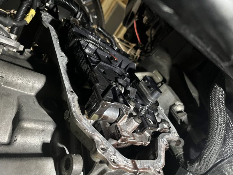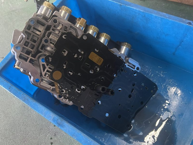 シフトレンジセンサーを交換する為には、ミッション内部より更にバルブボディAssyを取り外して組替え、レンジポジションの調整を行います。