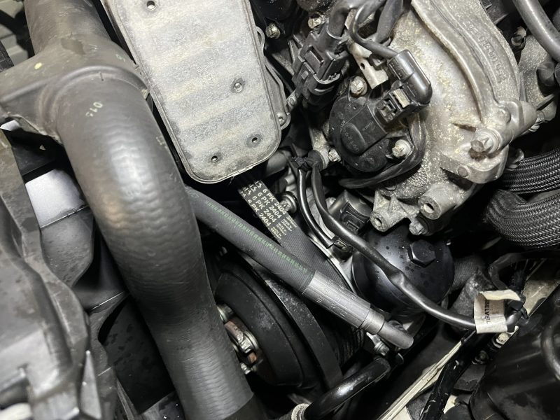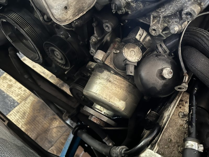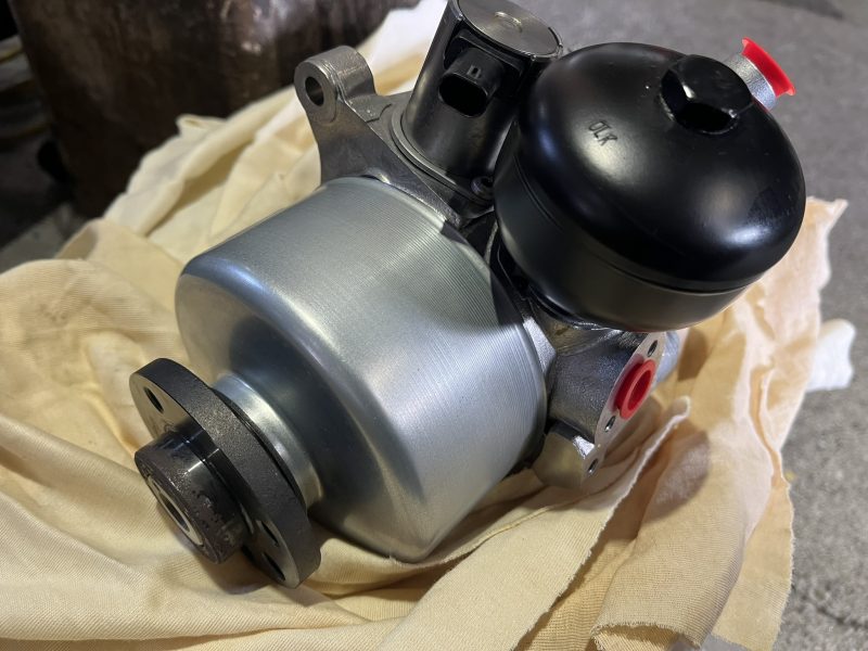 その為ファンベルトで駆動するハイドロリックポンプが備わっているのですが、そのポンプからオイル漏れが発生している為リビルト品へと組換え作業となります。