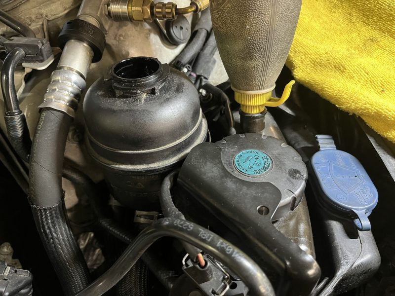 ABC(アクティブボディコントロール)のハイドロリックポンプよりフルード漏れが発生している、W216モデル/ベンツCL550の修理作業です。