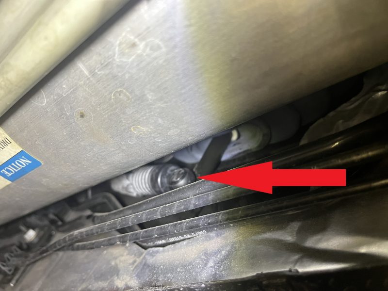 スペースが狭くて見辛いですが、現車はワイヤーチューブが破損してしまっている状態に陥っています。