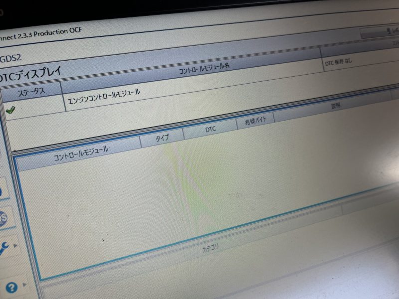 バルブアクチュエーターの脱着やマフラー交換(バルブ交換)に伴いバルブの学習値に影響を及ぼしている為、GDSを使用しエキゾーストコントロールバルブのキャリブレーション(学習)を実行。