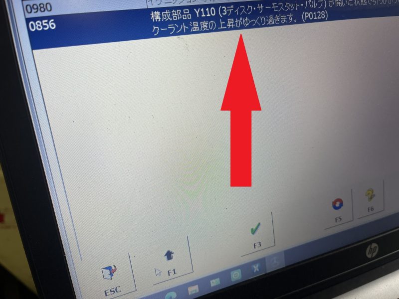 DAS診断機にてショートテストを実行すると、MEコントロールユニットがクーラントサーモスタットの不具合を検知しています。