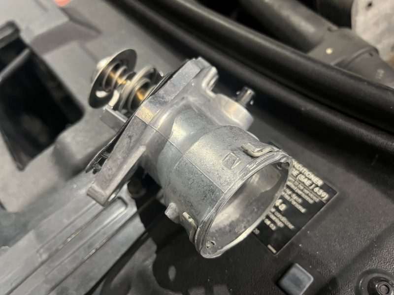 M273系エンジンでは3ディスクサーモスタットバルブを採用していますが、水温の上昇時間が遅い=サーモスタットが閉まらずに開いた状態のままとMEコントロールユニットが判断し、先のエラーを検知します。