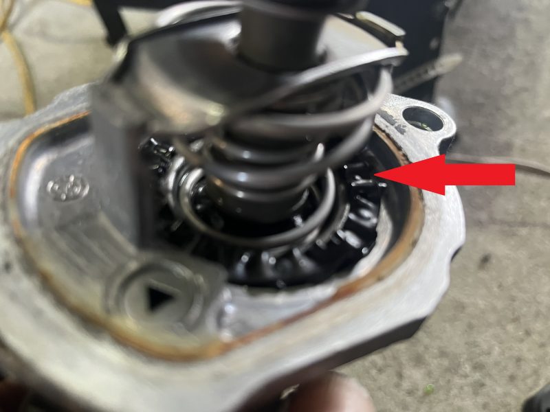 このエンジンのサーモスタットトラブルで多いのは、弁に装着されているシールパッキンの劣化。