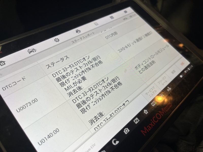 コントロールエリアネットワークにてECMが通信不良状態なので、そもそものチェックエンジン警告点灯原因やそれに伴うエンジン不調症状の実測値点検が全く行えない状態です。
